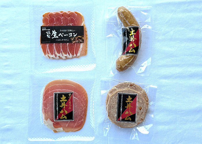 お歳暮用手作りハムセット「柚(ゆず)」 ■セット内容■ ラックスハムスライス38g 1 荒引きフランクフルト1本入り80g 1 スモークベーコン(生ベーコン)スライス35g 1 リオナソーセージブロック80g 1 ■商品詳細■ どの製品も、主役として、それぞれが主張している製品ばかりです。 品数は少ないですが、人気のラックスハムと生ベーコンに加え、アラビキフランクフルトとリオナソーセージの塊で食べ応えのあるソーセージ2種。この4種類で豪華なディナーが出来上がります。 ちょっとしたお使い物に大変喜ばれるお値段と商品の組み合わせです。 ラックスハムはドイツ語で鮭を意味します。ピンク色に仕上がった色は食欲をそそります。 やわらかなハムで燻製の香りのする、ドイツ特有の生ハムです。ドイツでは一般家庭でもよく口にする一般的な食材です。ドイツでの基本的な食べ方は食事の前菜としてそのまま食べたり、ライ麦パンや黒パンに乗せて食べるなどがあります。そのほかにも果物に巻いて食べたりもします。 土井ハムのお勧めはサラダと一緒に食べる、少しアメリカンな食べ方と、サンドウィッチの具として使ってみるのも美味しい食べ方です。 ベーコンスライスは前菜としてサラダやオードブルにお使いいただけます。 ベーコンは生で食べられると驚かれることでしょう。焼いても生でも使い勝手が良い製品です。 豚の腸に入ったアラビキフランクフルトは粒胡椒が入った少し大人向けの味付です。 食べ応えのある太さですから、中まで温めるには袋のまま80℃くらいで温めた後、フライパンで空焼きして香ばしくお召し上がりください。 アラビキフランクはそのまま焼けばとても食べ応えのあるボリュームで、またスープを作って最後に浮かべたらご馳走スープになります。もちろん焼かずにそのままでも食べられます。 燻製の香りのするリオナソーセージはベーコンと生ハムを混ぜ込んだプレスハムのような味のソーセージです。 リオナソーセージはそのままでも焼いてハムステーキのように食べるのも良し、パスタやチャーハンの具材としても最高です。 お弁当等のわき役としてもしっかり味を主張している品物ばかりです。 ちょっとしたプレゼントでも、美味しいものを贈りたい方に最適なセットです。 土井ハムを食べたことのない方に、お試しで差し上げてみてください。 きっと新しい味に驚かれることでしょう。 どれも他では食べられない美味しさと喜んでいただけるはずです。 ★化粧箱を選んでください★ ![]() 土井ハムでは、お歳暮用の化粧箱を2種類ご用意しています。 一つは今までどおりの高級感漂う化粧木箱。 もう一つは、新たに追加されたエコ紙箱。 いずれかをお選びいただければ、選んでいただいた箱でお送りいたします。 もちろん箱代は無料です。 |