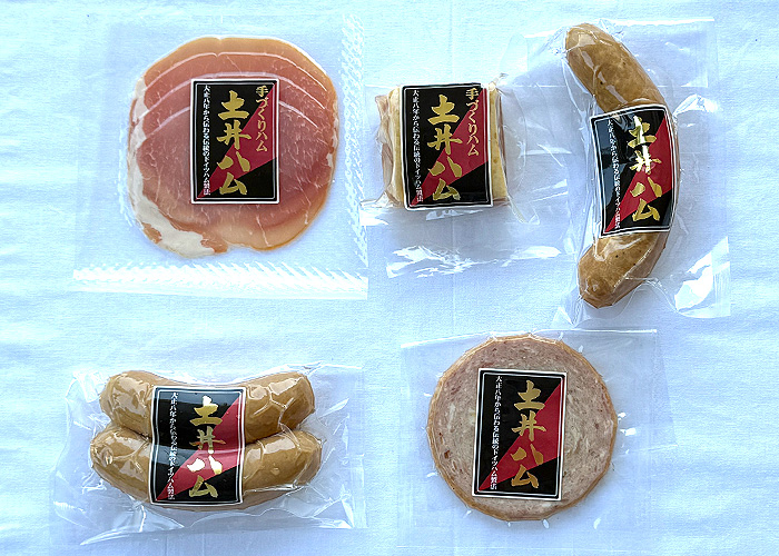お歳暮用手作りハムセット「梅(うめ)」 ■セット内容■ ラックスハム(生ハム)スライス38g 1 フランクフルト120g 1 スモークベーコン(生ベーコン)ブロック80g 1 荒引きフランクフルト1本入り80g 1 リオナソーセージ40g 1 ■商品詳細■ これら人気の商品の組み合わせはバラエティに富んできっと先様にお喜び頂けるでしょう。 ラックスハム、ベーコンは生でも食べられます。ドイツでは一般家庭でもよく口にする一般的な食材です。ドイツでの基本的な食べ方は食事の前菜としてそのまま食べたり、ライ麦パンや黒パンに乗せて食べるなどがあります。そのほかにも果物に巻いて食べたりもします。 土井ハムのお勧めはサラダと一緒に食べる、少しアメリカンな食べ方と、サンドウィッチの具として使ってみるのも美味しい食べ方です。 豚の腸に入ったアラビキフランクフルトは粒胡椒が入った少し大人向けの味付です。 食べ応えのある太さですから、中まで温めるには袋のまま80℃くらいで温めた後、フライパンで空焼きして香ばしくお召し上がりください。もちろん焼かずにそのままでも食べられます。 燻製の香りのするリオナソーセージはベーコンと生ハムを混ぜ込んだプレスハムのような味のソーセージです。そのままでも焼いてハムステーキのように食べるのも良し、パスタやチャーハンの具材としても最高です。 お弁当等のわき役としてもしっかり味を主張している品物ばかりです。 ★化粧箱を選んでください★ ![]() 土井ハムでは、お歳暮用の化粧箱を2種類ご用意しています。 一つは今までどおりの高級感漂う化粧木箱。 もう一つは、新たに追加されたエコ紙箱。 いずれかをお選びいただければ、選んでいただいた箱でお送りいたします。 もちろん箱代は無料です。 |