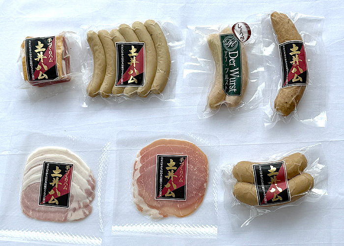 お歳暮用手作りハムセット「椿(つばき)」 ■セット内容■ ラックスハム(生ハム)スライス38g 1 ロースハム(布巻製法)スライス38g 1 ウインナー140g 1 フランクフルト120g 1 スモークベーコン(生ベーコン)ブロック80g 1 荒引きフランクフルト1本入80g 1 ヴルストしょうが70g 1 ■商品詳細■ ご家族が多いお宅に贈りたい品です。 ラックス(生)ハムは一番人気の商品です。塩味だけで味付けしていますが、ほんのり甘く感じ、肉の旨みもぎゅっと閉じ込められているのを感じていただけることでしょう。 ロースハムは、燻製後、ボイルしておりますので、脂身が、柔らかく美味しいです。 子供からお年寄りにまで喜ばれる、柔らかいロースハム。優しい味の中に肉本来の味がしっかり生きています。 ボリュームのあるフランクフルト2種類。フランクフルトは、一番ポピュラーなドイツソーセージです。 袋のまま80℃のお湯で3分ボイルして、袋を開けて、お召し上がりいただけます。 もっと香ばしく食べるには、フライパンで油をひかずに空焼きしてください。 コロコロ転がしながら焼き目をつけるとパリっと皮が固くなります。 皮が気になる方は剥いて、和辛子醤油等でお召し上がりください。ドイツのソーセージですが、驚くほどお醤油に合います。柚胡椒で召し上がっても美味しいです。 ベーコンはブロックですので、チャーハン等にゴロゴロ切って入れると噛み応えのある美味しさです。 生でも食べられます。 ピザの具やパンにも合い、どなたにも喜んでいただけるボリュームあるセットです。 小さなお子さまからご年配の方まで、皆様に喜んでいただけるセットです。 ★化粧箱を選んでください★ ![]() 土井ハムでは、お歳暮用の化粧箱を2種類ご用意しています。 一つは今までどおりの高級感漂う化粧木箱。 もう一つは、新たに追加されたエコ紙箱。 いずれかをお選びいただければ、選んでいただいた箱でお送りいたします。 もちろん箱代は無料です。 |