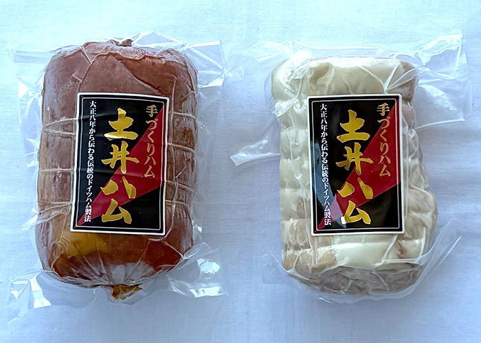 手作りハムブロックセット C 税込・送料無料・熨斗付き・木箱入り ■セット内容■ ラックスハム 生ハム(ブロック)580g 1 布巻製法ロースハム(ブロック) 580g 1 ■商品詳細■ 生ハムとロースハムの豪華な2本入りセットです。 生ハムはその特性を生かして、表面だけさっと焼いてお召し上がりください。 中はもちろんレア(生ハム)のままで。 食べ応えのある厚切りステーキは1.5p位が最適です。 薄くスライスする場合には、少し凍らせて削るようにお切りください。 残ったらラップに包んで、冷凍も可能ですが、1回分ずつ切り分けて包んでおいたほうが使いやすいです。 ロースハムは生ハムが苦手な方、ご年配の方には最適なやわらかいハムです。 薄切りでも厚切りでも自由に切れて、大変使い勝手の良いハムです。 お薦めは少し厚めに切って、表面を軽くフライパンで焼き、食パンにはさむとぐっと食べ応えのある、サンドウイッチが出来上がります。 トッピングに、チーズやレタス。変わったところでは、はちみつも合います。 2種類のハムを、いろいろな食べ方でお楽しみください。 ★化粧箱を選んでください★ ![]() 土井ハムでは、お歳暮用の化粧箱を2種類ご用意しています。 一つは今までどおりの高級感漂う化粧木箱。 もう一つは、新たに追加されたエコ紙箱。 いずれかをお選びいただければ、選んでいただいた箱でお送りいたします。 もちろん箱代は無料です。 |