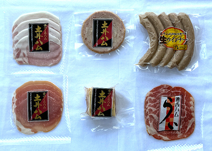 冷凍セット B 税込・送料無料・白ダンボール入り ■セット内容■ ラックスハム38g 1 スモークベーコン(生ベーコン)ブロック80g 1 布巻製法ロースハム(スライス)38g 1 酒香ハム「らい」スライス45g 1 リオナソーセージ40g 1 生ウインナー(プレーン)140g 1 ■冷凍について■ こちらのセットは全て出来立てを瞬間冷凍にしております。 生ウインナー以外は出来るだけお召しあがりの半日から1日前位に冷蔵庫で解凍して下さい。 ★生ウインナーは必ず冷凍のままプライパンで焼きます。解凍すると形が崩れます。 焼く際にはフライパンに凍ったままを並べ水を50t〜60tほど入れ、強火で沸騰させます。 白く色が変わってきたらコロコロ転がして水がなくなるまで転がし、少しきつね色になるまで焼きます。 大体8分くらいで出来上がります。 決して電子レンジにはかけないでください。 ポトフにするときは、すべての材料が煮込まれた後に凍ったままのウインナーを入れて白く弾力が出るまで ゆでてください。ゆですぎるとパンクしますので3分から5分で火を止めてください。 他の製品の場合お急ぎの際は、パックのまま流水にて解凍していただければ、自然解凍に近くなります。 お湯等で急激に温めないようにした方が、美味しいです。 解凍後は冷蔵庫でパックのままは1週間程度、開封後はお早めにお召し上がりくださいませ。 いちど解凍した後、再冷凍は食感と品質が落ちるためにお勧めいたしません。 どうしても使いきれない際には、しっかりと封をしてチルドにて保管くださいませ。 光や乾燥も品質を劣化させます。保存料を使っていませんのでお早めにお召し上がりくださいませ。 |